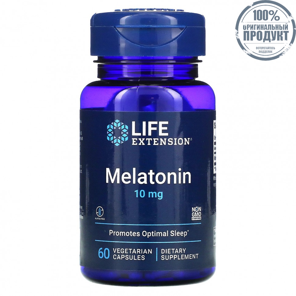 Life Extension, Мелатонин, 10 мг, 60 вегетарианских капсул